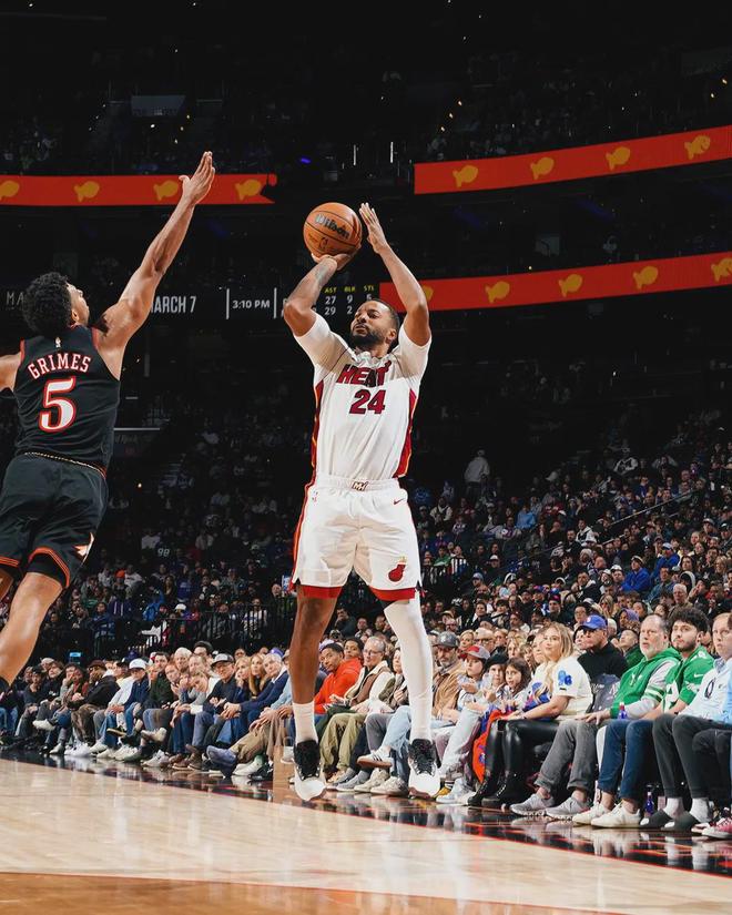 維金斯本賽季在熱火首發(fā)出戰(zhàn)21場比賽,場均出戰(zhàn)32.8分鐘,得到16.8分5籃板3助攻1搶斷1.1蓋帽1.9失誤,三項命中率:48.3%,37.1%,70.2%。投籃命中率是個人生涯新高,場均得分卻是生涯第二低,僅高于2023-24賽季13.2分。